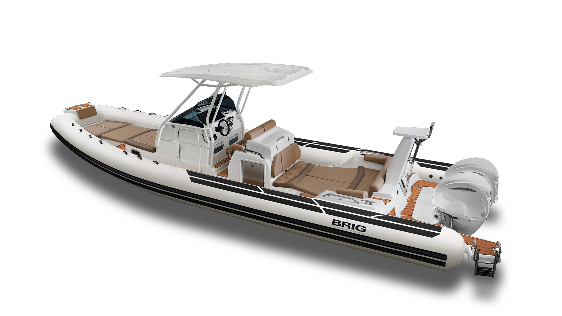 Met een lengte van 9,95 m en een breedte van 3,40 m is de BRIG Eagle 10 het vlaggenschip van de Eagle-serie. Deze RIB biedt een comfortabele ruimte voor twaalf volwassen personen.